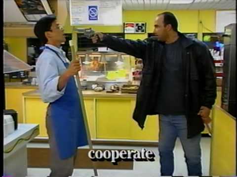 This video shows ways to prevent or defuse violent situations in retail stores, particularly during an armed robbery.